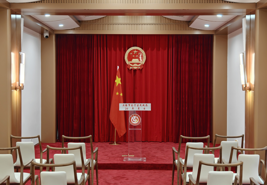 最受期待的是全新打造的新中式颁证厅,保留了广受好评的古典颁证台,搭配新的灯光设计和背景装饰,既延续了传统韵味,又增添了新鲜感。“之前很多新人反馈,颁证仪式是领证过程中最神圣的环节,我们希望每对夫妻都能在此留下终身难忘的回忆。”二楼设有6个结婚登记窗口,流线型设计与花朵装饰让办理过程更具人情味。工作人员表示,新址的设计始终围绕“以人为本”,从功能分区到细节装饰,都力求让婚姻登记不再是简单的流程化手续,而是一场充满仪式感的幸福旅程。