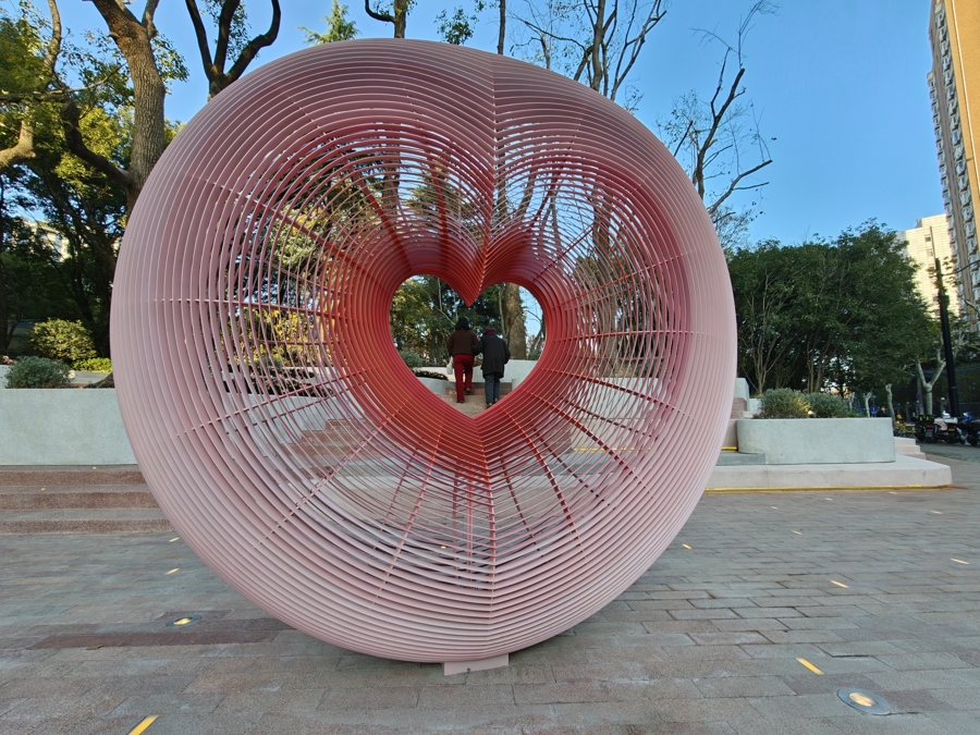 沿着幸福路漫步,三个充满创意的艺术装置让这条街的“幸福感”更加可触可感。这些源自新华路街道与大鱼营造共同推出的“微小艺术共创计划”的装置,以“幸福”与“情感联结”为核心,通过身体互动、拍照打卡、扫码留言等多元形式,让公共空间焕发新生。