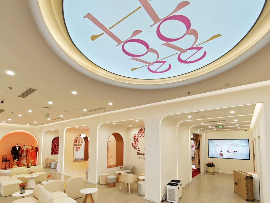 走进长宁区民政局婚姻登记处新址,四层小楼的每一处设计都暗藏着对“幸福”的注解。这幢被市民亲切称为“小粉楼”的建筑,以浪漫的粉红色系为主基调,半圆形的拱门、柔软的沙发座椅,让等待叫号的新人倍感温馨。顶灯上中式“囍”字与英文“LOVE”巧妙融合,让每一对推门而入的情侣都能“抬头见喜”。